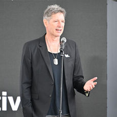 야외무대인사에서 문봉섭 작가 소개하는 주방옥 프로듀서