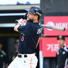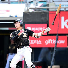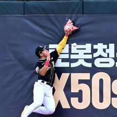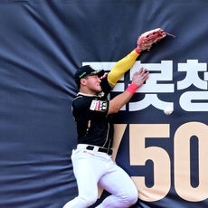 KT 우익수 안현민, '펜스에 몸 던졌지만'