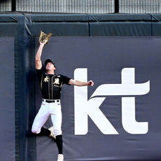 KT 중견수 스티븐슨, '선발 고영표 돕는 좋은 수비'