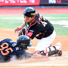 황영묵, '좌익수 뜬공에 홈 베이스 노려봤지만'
