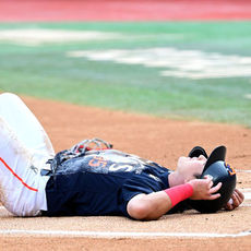 홈 태그아웃에 아쉬움 감추지 못하는 한화 황영묵