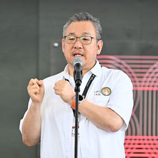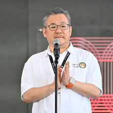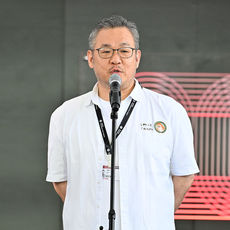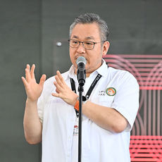 야외무대 인사하는 정용기 감독