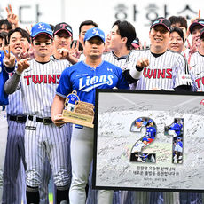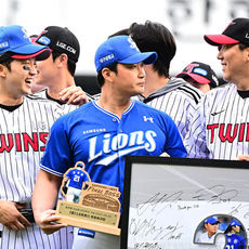 박해민, 오승환 은퇴투어 친정팀 삼성 모자 쓰고