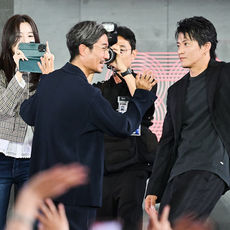 포토 타임 갖는 츠키카와 쇼 감독과 오구리 슌 촬영하는 한효주