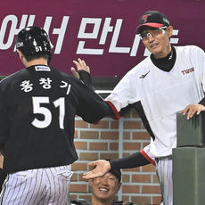 득점 성공 홍창기, 염경엽 감독과 하이파이브
