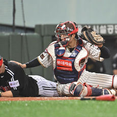 조형우,'글러브 맞고 튕겨나가'