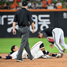 원태인 송구 실책에 황성빈 홈으로 쇄도