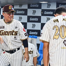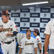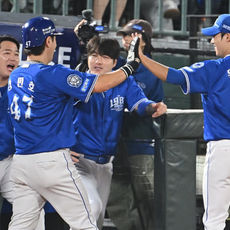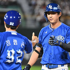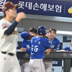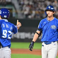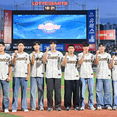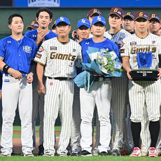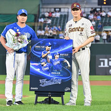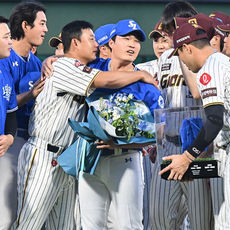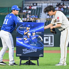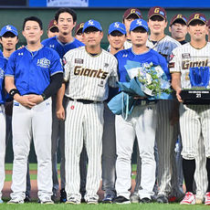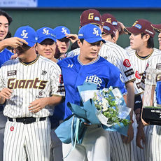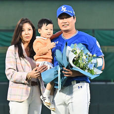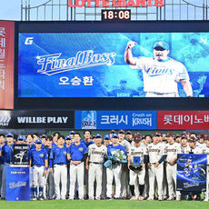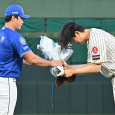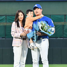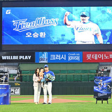 김원중에게 꽃다발 받는 은퇴투어 오승환