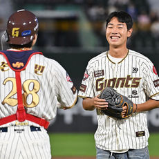 시구하고 활짝 웃는 롯데 자이언츠 신인 신동건