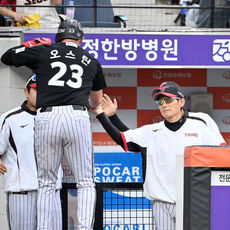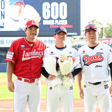 조성환 감독대행,'고효준 600경기 출장 축하해'