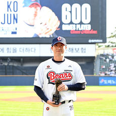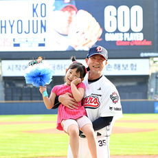 KBO 600경기 출장 고효준,'사랑하는 딸과 함께'
