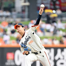 한화 선발 문동주,'매의 눈빛으로'