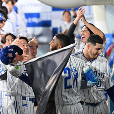 역대 최초 50홈런-150타점 기록세운 디아즈와 기뻐하는 동료들