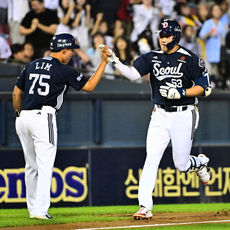 임재현 코치, 양석환 선제 투런포 하이파이브