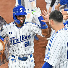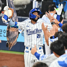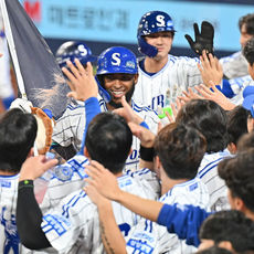역대 최초 50홈런-150타점 기록세운 디아즈와 기뻐하는 동료들