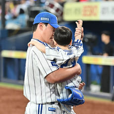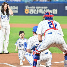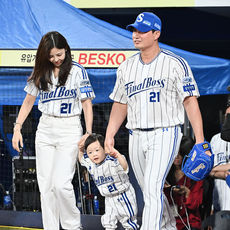 시구마친 아들 서준과 팬들에게 인사하는 오승환