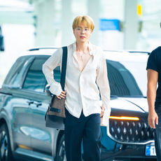 BTS 지민,'공항을 런웨이로…파리 패션쇼 향하는 완벽 비주얼