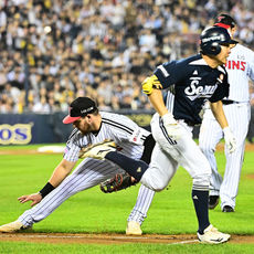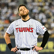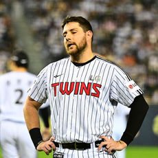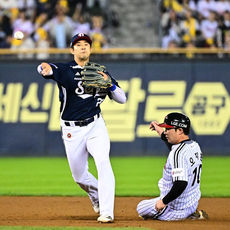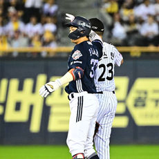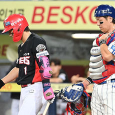 타구에 목 맞은 강민호, 큰일날 뻔 했네