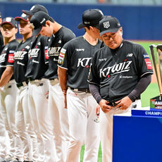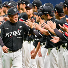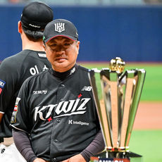 퓨처스리그 우승 트로피와 KT 김호 감독
