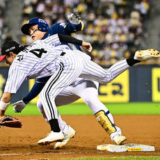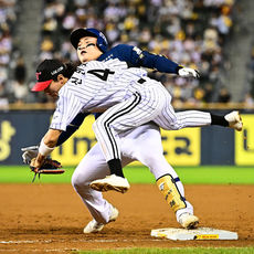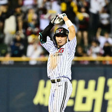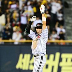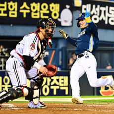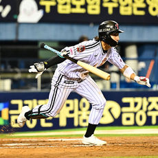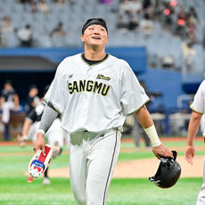 체크스윙 헛스윙 판정에 아쉬워하는 이재원