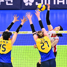2026.01.21 20: 43박정아 상대 블로킹 성공 양효진, 좋았어