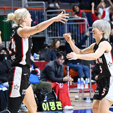 2026.01.21 20: 58승리 기쁨 나누는 부산 BNK 김소니아와 안혜지