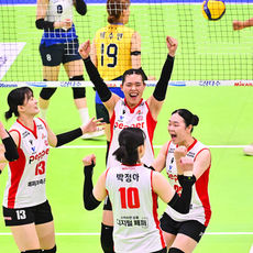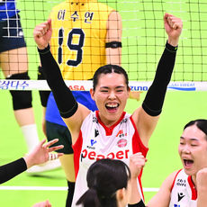 환호하는 양효진, 페퍼저축은행 추격 어림없다