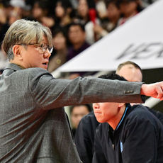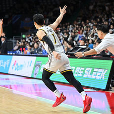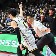 2026.01.23 19: 51유기상 3점슛 성공에 조상현 감독 엉덩이 툭