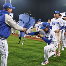 2026.04.01 21: 31KBO리그 최초 3000승 축하 꽃다발 받은 박진만 감독
