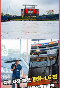 한화-LG전, 폭우 내리는데 일단 1시간 지연 시작 목표 [O! SPORTS 숏폼]