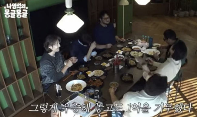 손호영은 “촬영 초반 인터뷰에서 ‘상금 1억 원을 받으면 뭐 하고 싶냐’는 질문을 받았다. 솔직히 1등은 전혀 기대하지 않았어서 그냥 ‘전액 기부하겠다’고 적었다”며 “그런데 정말 우승을 하게 됐고, 약속대로 기부를 했다”고 밝혔다.이를 듣던 멤버들은 웃음을 터뜨렸고, 박준형은 “그게 바로 호영이다. 왜 웃기냐면, 이런 일이 생겨도 그냥 받아들인다”고 말해 현장을 웃음바다로 만들었다. 나영석 PD가 “호영 씨 인생은 늘 이런 식이었냐”고 묻자 멤버들 역시 격하게 공감하며 고개를 끄덕였다.